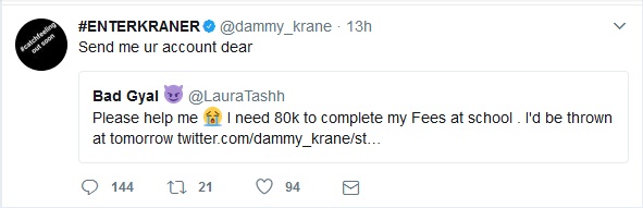 After being slammed with 8 counts of credit card fraud charges in the US, and a possible jail term, Nigerian singer, Dammy Krane took to Twitter yesterday to announce he is giving away 100K!