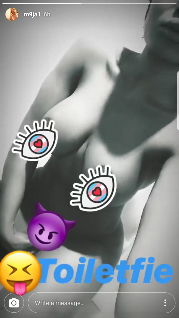 Nigerian nudist, Maheeda, went completely naked in her bathroom and strategically covered her modesty with emojis in a new post she shared via her Instagram story.