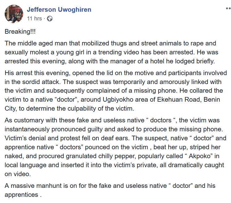 The incident was recorded and posted on social media. The Edo State police have now launched a manhunt for the doctor, while the other men involved in the dastardly act, are already in police custody.