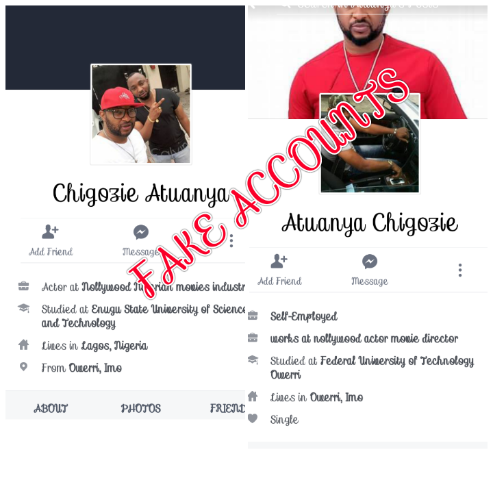 Thus, the Anambra State born actor cum producer, posted a disclaimer photos on his Instagram page, warning his innocent fans not to fall victims of any of his fake account operators.